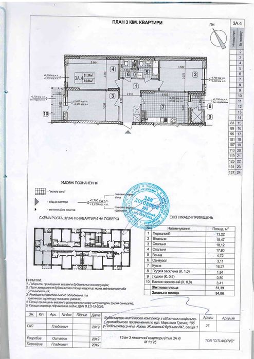 -загальна площа квартири 95,2 кв.м.