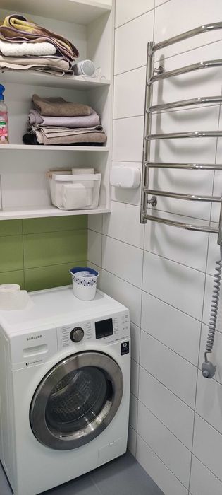 Санвузол (об’єднаний) – 5.3 м2, ванна, пральна машинка, електрична сушарка для рушників, вбудована шафа, бойлер на 100л, підвісний унітаз, настінна шафа, фен, витяжка.