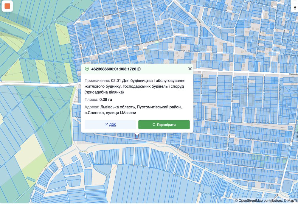 | Земельна ділянка: |