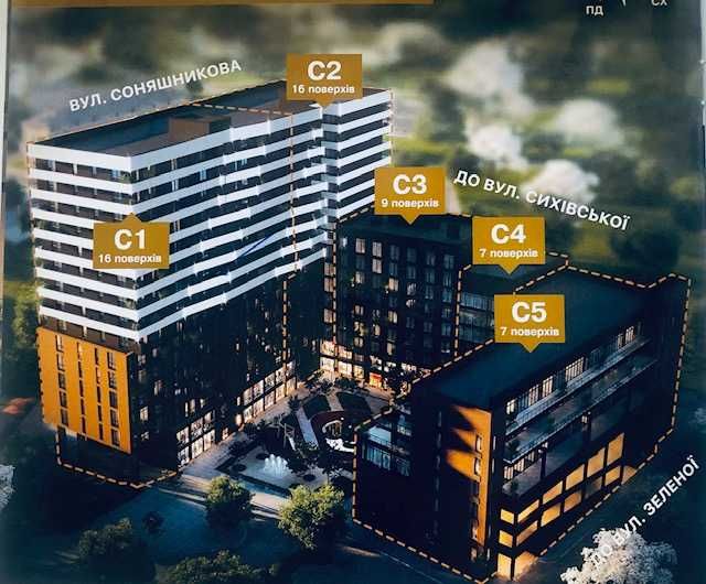 Сихівський; Без комісіі і переплат! 1 кім.к-ра "Auroom Solar" вул.Соняшникова 32; 1кім. квартира 40.96м2 в будинку бізнес класу від власника без жодних додаткових платежів для покупця. 10 поверх з 16, 1а секція. Вікна на східну сторону, в сторону вул.Зелена. Монолітно каркасне будівництво, стіни і перегородки керамоблок, утеплення мін.вата 15см. Вікна Veko з подвійним склопакетом. Опалення електричне. Будинок відноситься до критичноі інфраструктури. Два ліфта. Висота стелі 2,8м. Лоджія. Здача кінець початок 2026р.