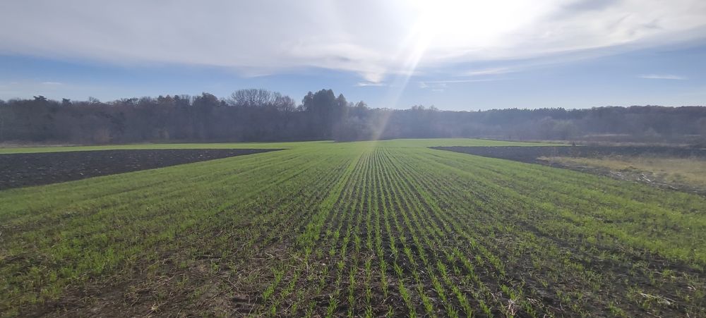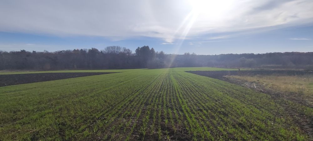 Більша частина ділянки розчищена від дерев та засіяна пшеницею.