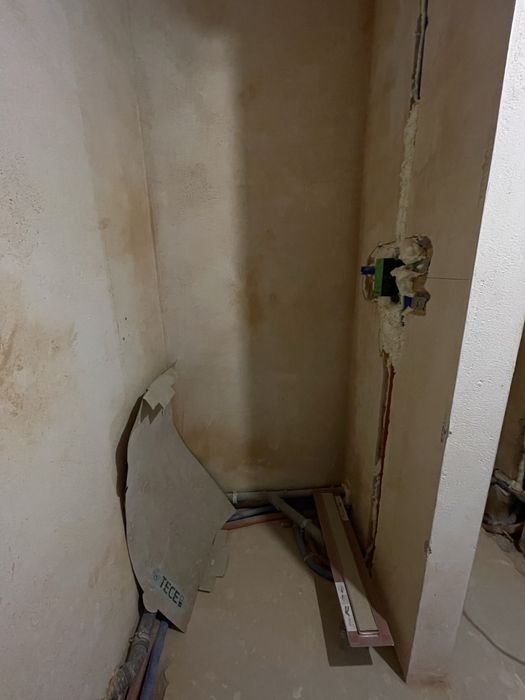 • Встановлена інсталяція для унітазу та душової, виводи під сушильну та пральну машину, кухню та систему під очистку води