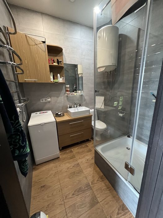 3. У квартирі залишається всі меблі: ліжко, меблі на замовлення разом із винним шафою, техніка нова індукційна плита, духовка та відносна нова пральна машина з функцією сушіння, що не мало важливо для такої квартири, кондиціонер.