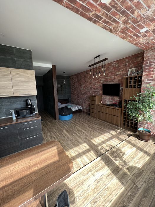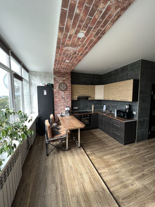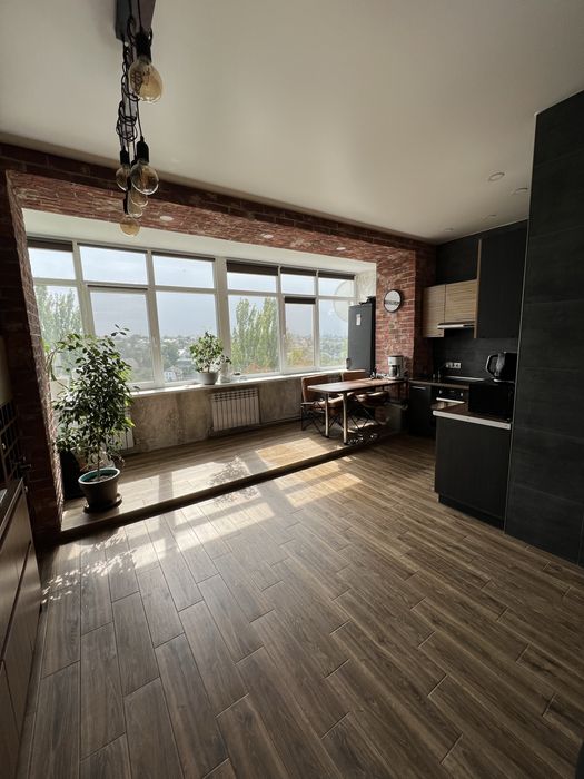 1. Свіжий ремонт у стилі Лофт 1.5 роки тому зроблень не під продаж, на стінах у коридорі та спальні – керамограніт, вся підлога у гарному кахлі під дерево.