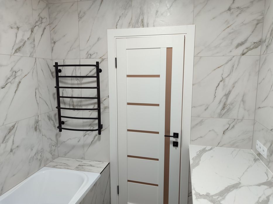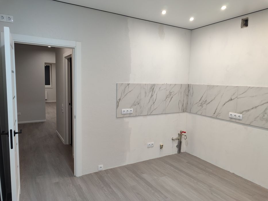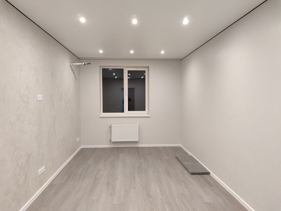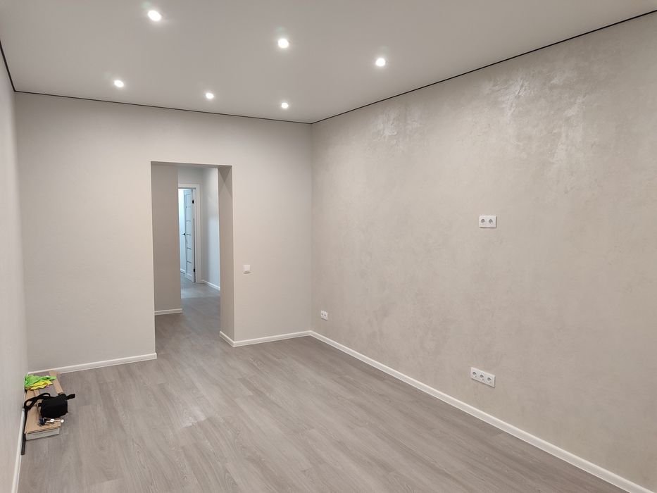 Пiдлога вiнiл, стеля натяжна з якiсного матерiалу, стiни декоротивна штукатурка