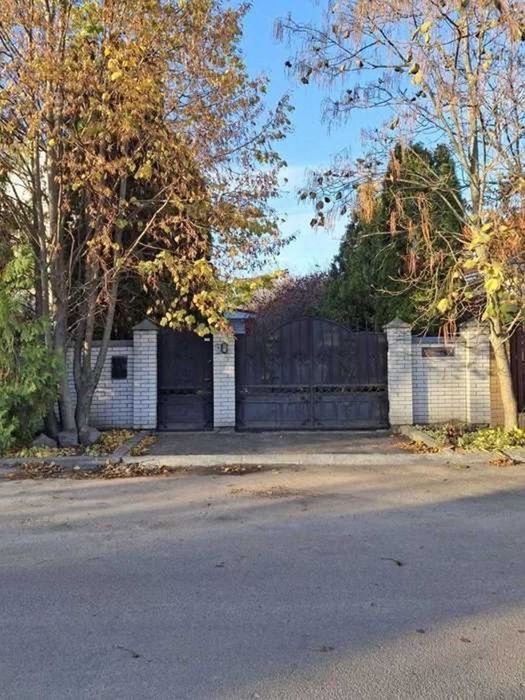* Респектабельный Вид: Внешняя отделка выполнена белым фасадным кирпичом, а периметр украшен надежным забором и коваными воротами с домофоном, подчеркивая статус и приватность.