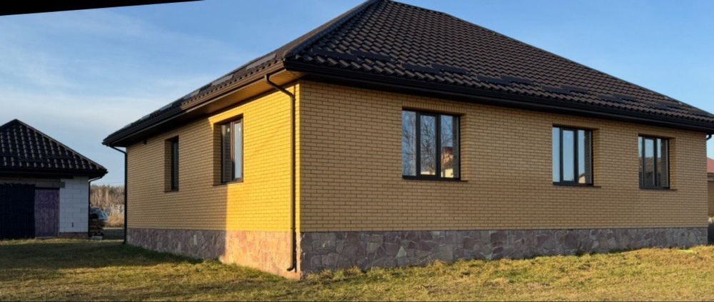Земельна ділянка 15сот. (22мХ75м). Будинок 128 м.кв. Піноблок 40. Фасад будинку (утеплений мінватою б=5, клінкерна цегла). Фундамент бутовий камінь. Подушка фундамента (гідроізоляційна плівка 800мкр., та теплоізоляція пінополістіроль б=20). Трьохфазний лічильник 13кВт. Заведена електрика до будинку (кабель ВВГ 4х10 мідь), від будинку до гаража ( кабель ВВГ 4х4).