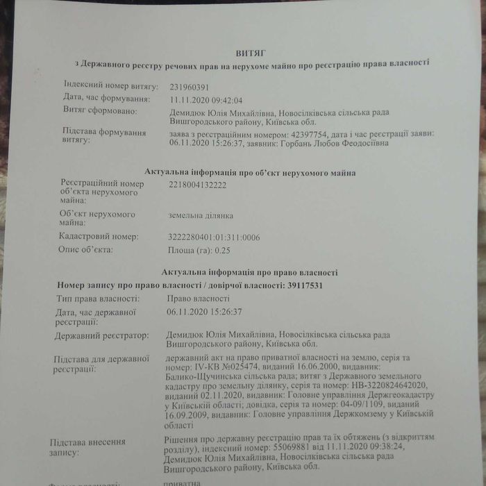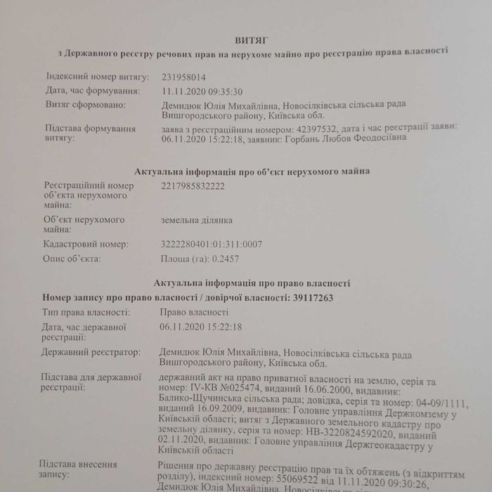 | Земельна ділянка: |