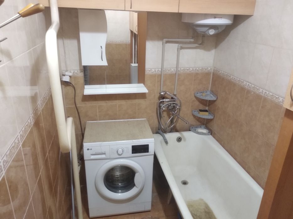 Є холодильник, газова плита, пральна машина, бойлер-гаряча вода тільки у ванній, на кухні гаряча вода централізоване постачання тільки в зимку, дві тумбочки - під мойку та справа від плити будуть замінені до кінця листопада.