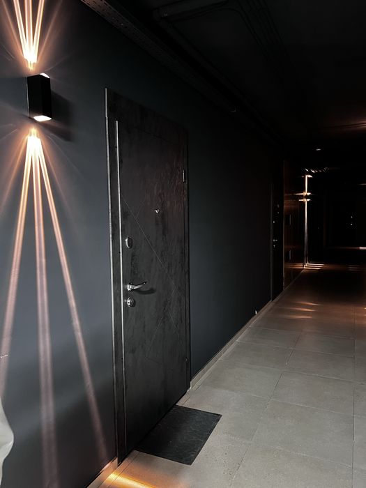 Ввод электричества (380 Вольт, на квартиру около 12 кВт). В квартире установлены качественней двери и корзина под кондиционер.