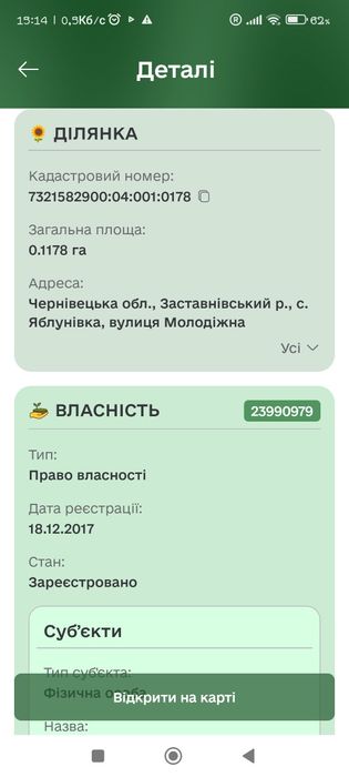 | Земельна ділянка: |