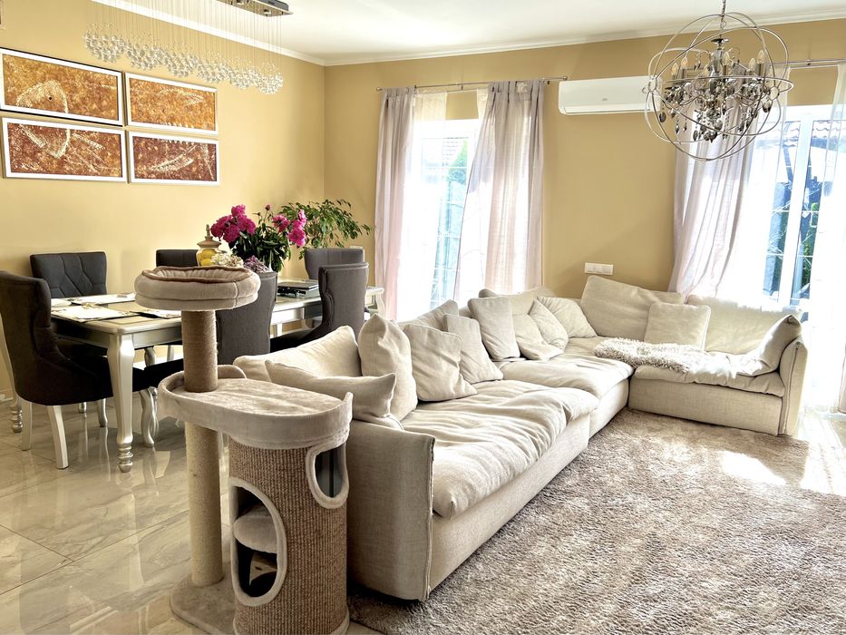 З власною невеликою земельною ділянкою. Ділянка облаштована сучасними садовими меблями, квіти, газон, посаджені дерева по периметру. Повністю мебльований. Технічно оздоблений. Тепла підлога, камін, бойлер, система цілодобової охорони, эксклюзивний ремонт, власний паркінг, три санвузли, артезіанська вода.