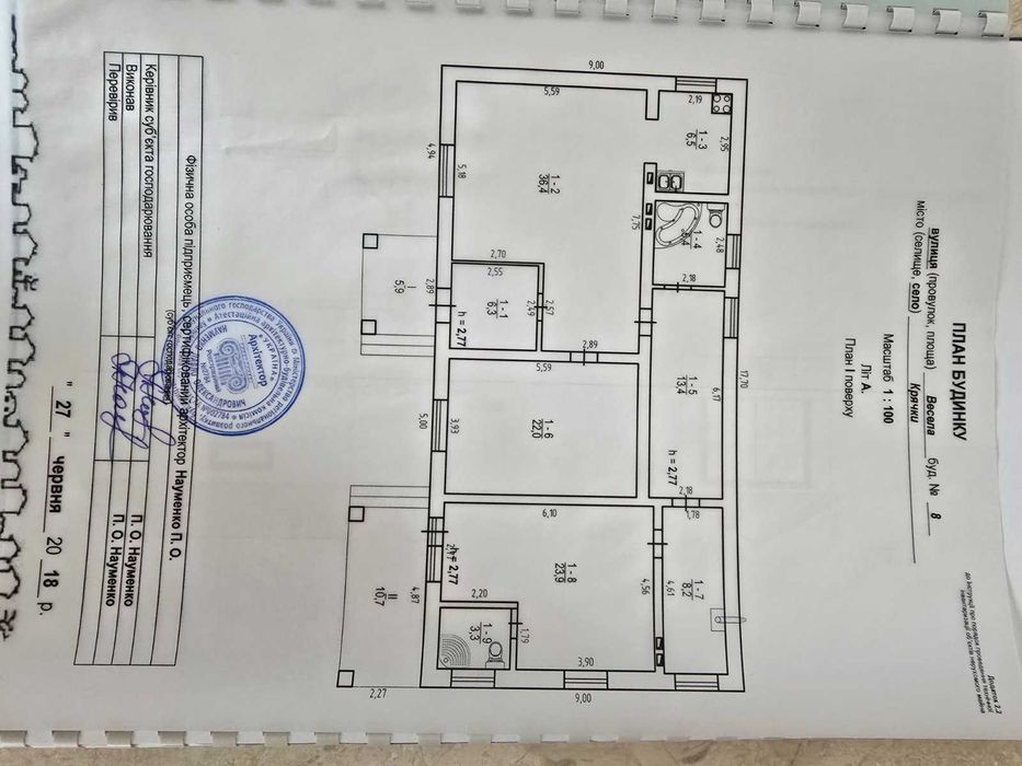 Стіни будинку з цегли марки м100, утеплення 100 мм пінопласт+декоративна штукатурка баранець Ceresit. Дах будинку з металочерепиці. Дах утеплений мінеральною ватою товщиною 200 мм. Залізобетонний стрічковий фундамент.