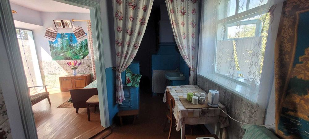 Здам в оренду будинок в с. Сокиринці Хмельницької області; Здам в оренду 3-х кімнатний будинок в с. Сокиринці Кам'янець-Подільського р-ну (колишній Чемеровецький р-н) Хмельницької обл. Будинок розташований неподалік річки Збруч (до річки 500 м). Будинок з двома входами розміщений на центральній вулиці села. До лівого входу відносяться дві кімнати. Одна кімната площею 9,2 м.кв. (це 2,3,4,5 фото) та інша кімната разом з кухнею 10 м.кв. (це 6,7,8 фото). З правого входу є коридор-кухня площею 3,4 м.кв. (це 9,10,11,12 фото) і далі велика кімната площею 14,6 м.кв. (це 13,14,15 фото). Матеріал будівлі кам'яно-глиняний. До будинку підведено газ, у дворі колонка. В будиноку підлога дерев'яна з відмінними дошками. Опалення газове та електричне. Встановлено конвектор газовий в великій кімнаті з правого входу та електро-конвектори в двох кімнатах з лівого входу. Також є біотуалет. Все, що потрібно для проживання залишаються: меблі, посуд, телевізор, холодильник, газова плита, конвектор, матраци, подушки, одіяла та інше. Будинок з господарськими будівлями (сарай, курник, підвал) та земельною ділянкою в 20 соток (двір, город).