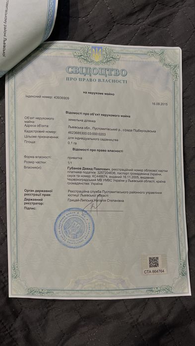 | Земельна ділянка: |