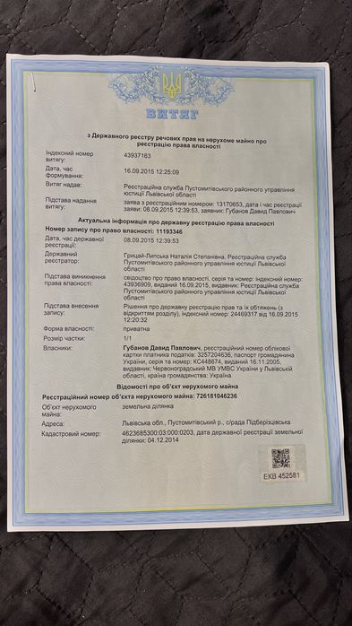 | Кадастровий номер: |
