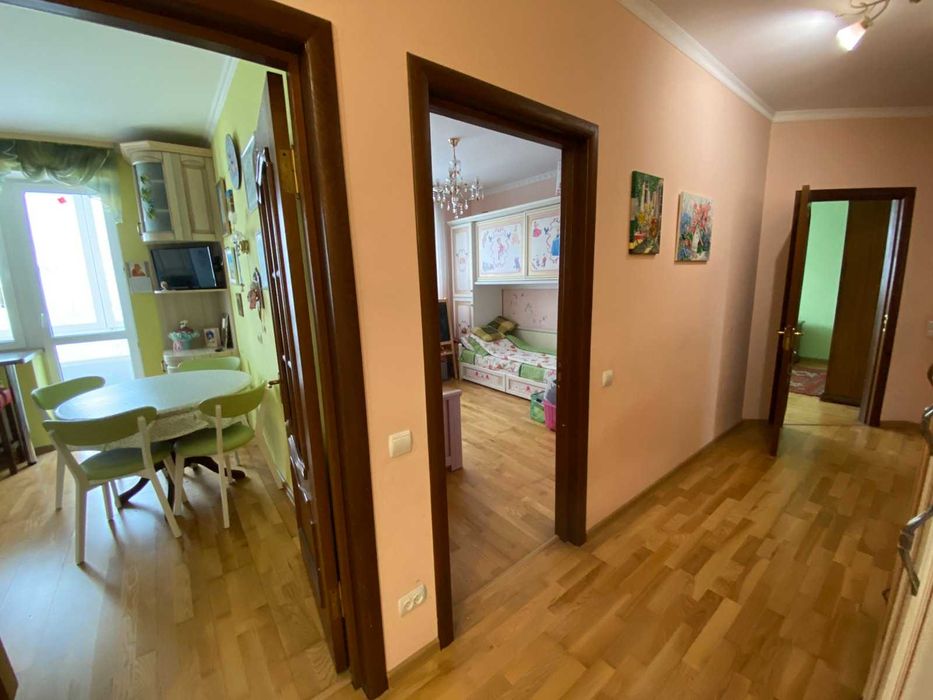 Планування: кухня, дитяча, спальня, вітальня, 2 санвузли (душ, ванна), балкон.