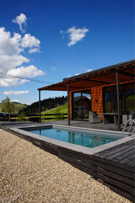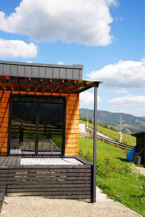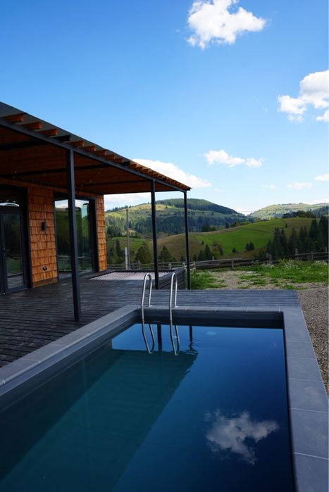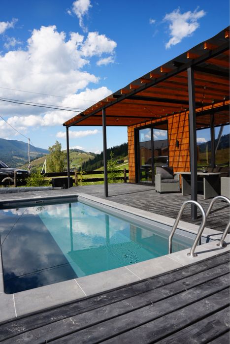 Продається Котедж з басейном,чан,панорамний вид на Чорногору.; В селі Красник Верховинського району Котедж капітальний на бетонному стрічковому фундаменті,повністю обмебльований,вся техніка ,тепла підлога,камін,величезна тераса,басейн 6*3,чан,з усіх кімнат панорамний вид на Чорногірський хребет,дві спальні,величезна кухня студія,дизайнерський ремонт,15 кв світла,своя свердловина 10 кубів води на добу,будинок повністю готовий для проживання або здачі в оренду пральна машина,посудоийна машина ,все нове сучасне величезний диван,телевізор,бойлер,електричний котел ,до будинку підключено 3 фази також додатково встановлено стабілізатори на кожну фазу вартістю 5000$ ,площа будинку 75 м кв крита тераса площею 60 м кв