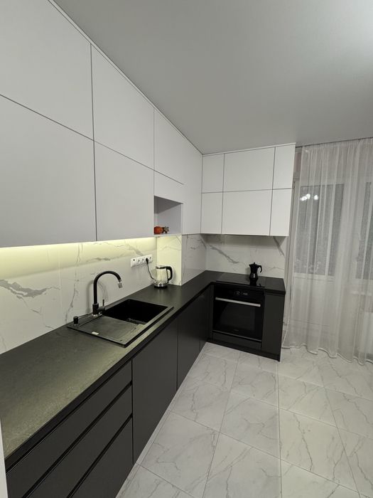 У ванній, туалеті та на кухні — тепла електрична підлога. Стелі та стіни пофарбовані, у санвузлах — керамограніт. Квартира мебльована, повністю готова до заселення. Площа — 65 м². Гарна шумоізоляція, спокійні та тихі сусіди.