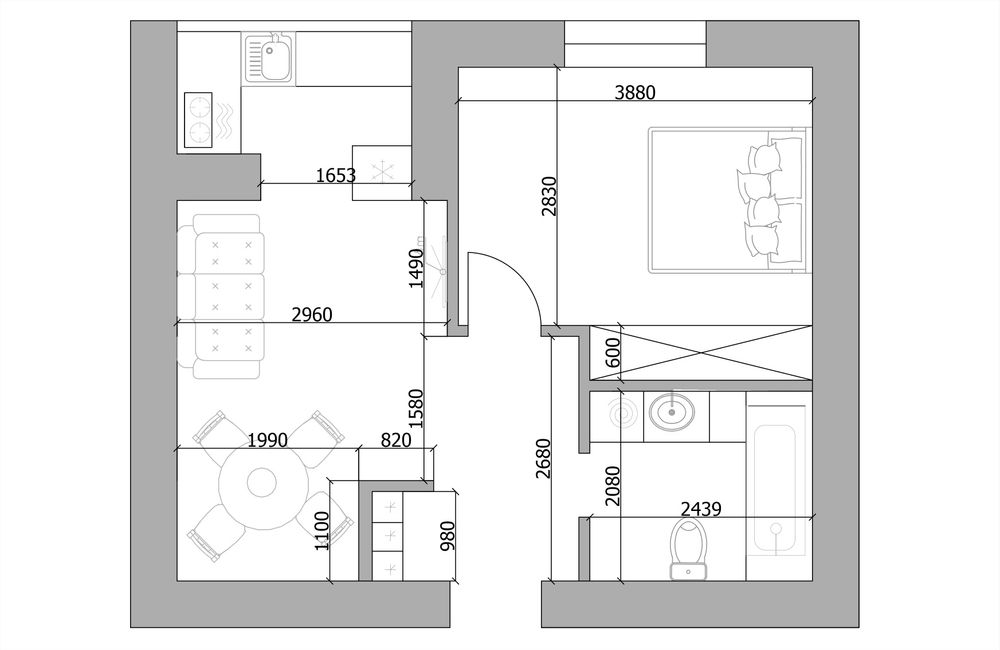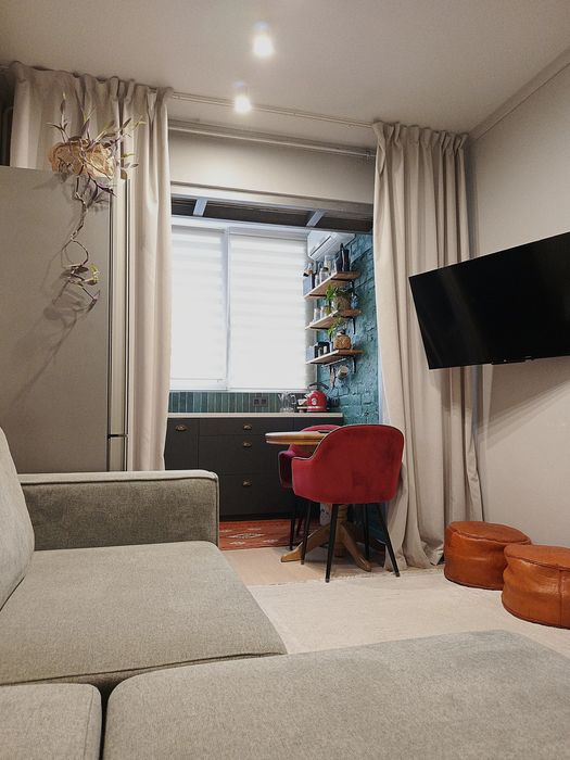 Загальна площа 35 м.кв : з них 12 м.кв окрема спальня, сан.вузол 4.5 м.кв, кухня вітальня.