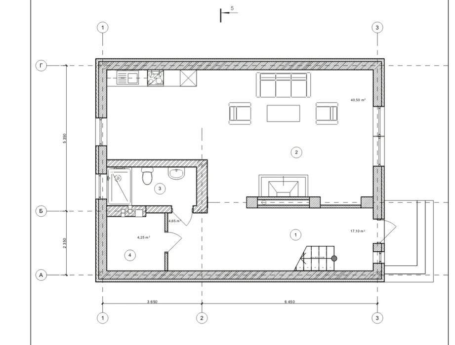 -Загальна площа будинку 135кв.м, житлова 60 кв.м., кухня-студія 42.55 кв.м.