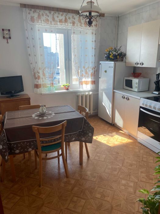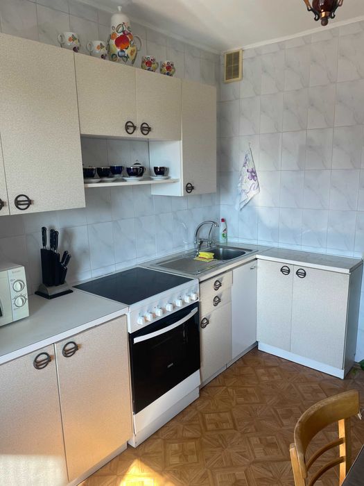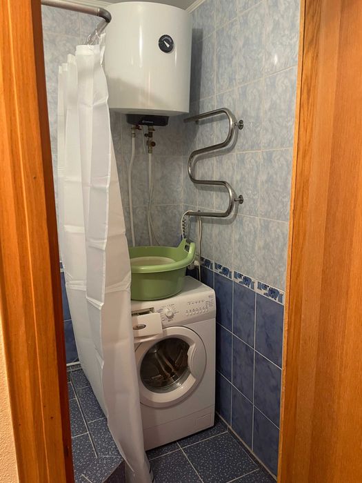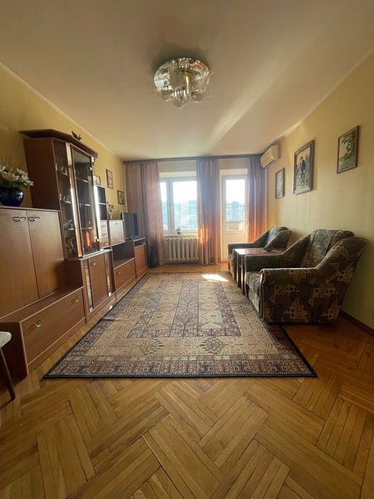 Здається в оренду в тихому місці 1-кімнатна квартира на 9-ому поверсі 14-ти поверхового будинку, вул. Тороповського 47, неподалік від метро Дарниця. Тепла квартира з централізованим опаленням та водопостачанням. Є бойлер, плита єлектрична (газова туристична додається), пральна машина, кондиціонер, металопластикові вікна, невеличкий балкон. Диван розкладається у двоспальне ліжко.