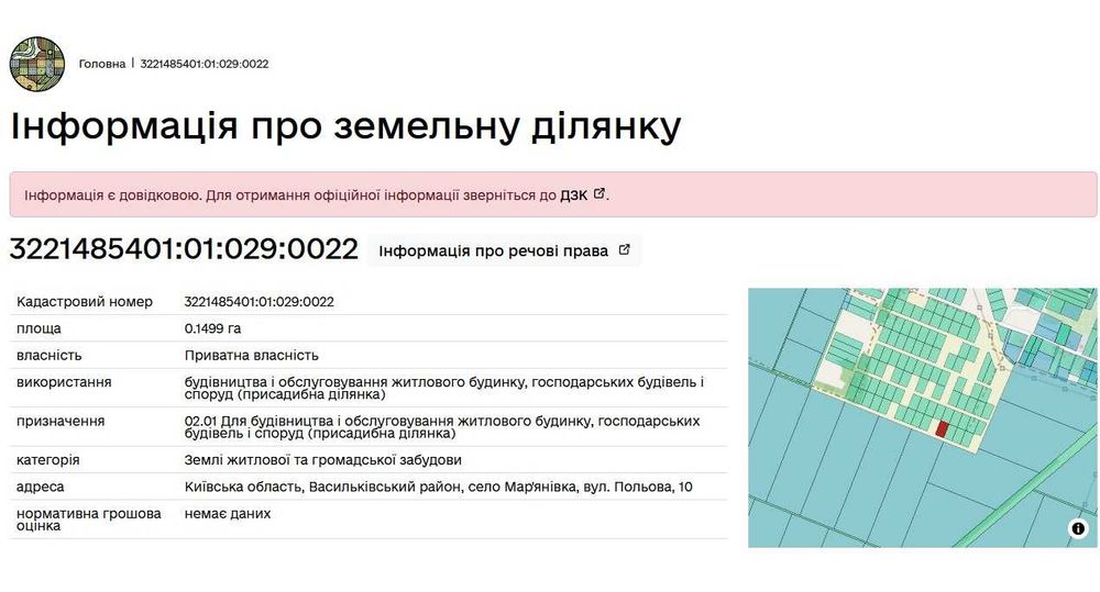 | Земельна ділянка: |