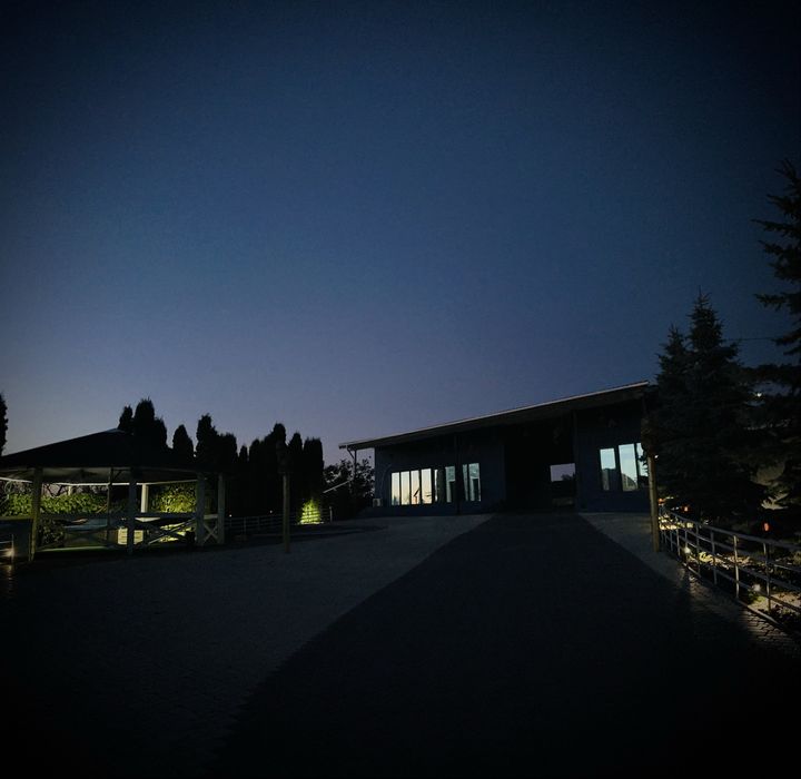 - Дах: 450 м², накриває основний і гостьовий будинки.