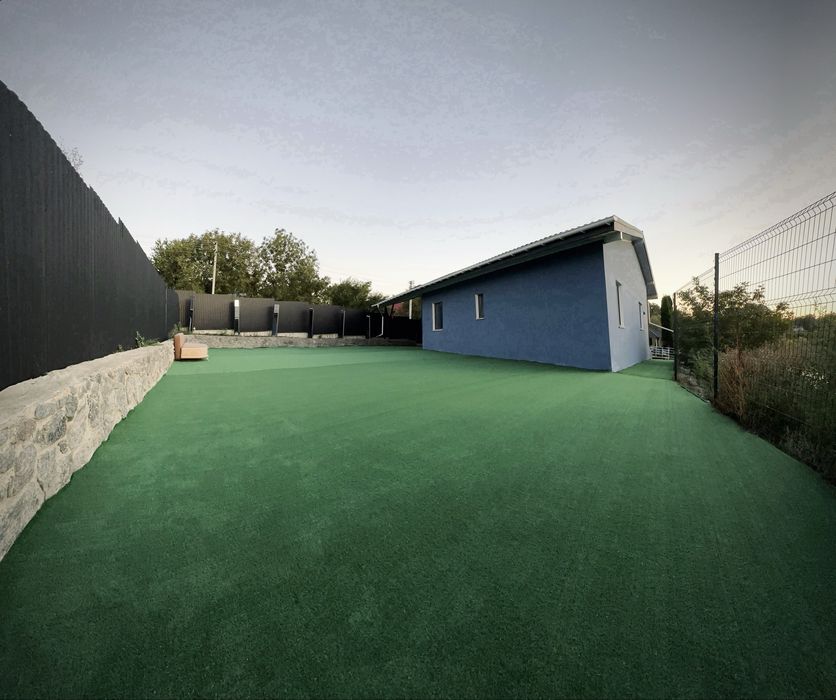 - Задній двір: 450 м² (бетон + штучна трава).
