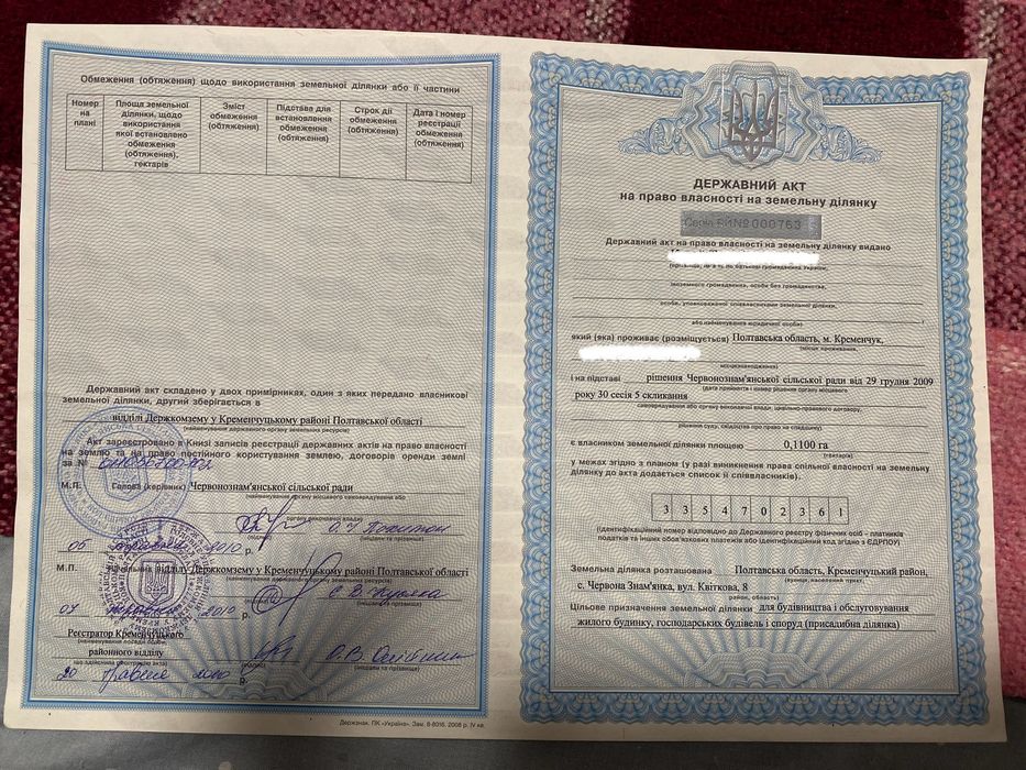 | Земельна ділянка: |