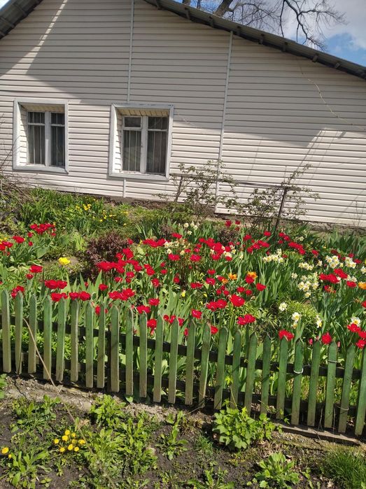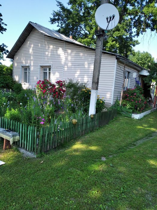 Продам будинок с.Осовець Чернігівська обл. за 75 км. від Києва!; Продам будинок в с.Осовець Ніжинського району Чернігівської обл. Село в 14 км від м.Бобровиці, де знаходиться залізнодорожна станція, або 75км від Києва. Будинок знаходиться в самому центрі села. Автобусна зупинка знаходиться безпосередньо біля двору, навпроти через дорогу знаходиться класний супермаркет, в якому є все абсолютно.Дорога асфальтована.Газ у нас під забором, можна провести..Сміття вивозять безкоштовно.Від дороги профільний забор 35м.,а все подвір'я загороджено металевою сіткою.Окремо загороджено великий участок для вирощування птиці. Город 45 соток Приватизовано 25 сот. Великий родючий сад в якому яблуні, груші, горіхи, шовковиця, вишні, черешні червоні, черешня біла, персик, 6 дерев кизила,абрикоси, сливи, малина, ожина, агрус, смородина, порічка, калина, клубніка, виноград "Аркадія" " Тимур" подарок Запоріжжя" і "Лідія". Город дуже родючий, чорнозем. Будинок складається із 3 кімнат, кухні, санвузла, кладової, коридора і котельні. Сарай з літньою кухнею, альтанка, погріб, колодязь, свердловина. Вода заведена в будинок із свердловини. Одна частина будинку дерев'яна, рік будівництва до шістдесятих років, а друга з новою добудовою із пінобетону і цегли, по периметру будинку залитий фундамент, будинок максимально піднятий, сухий, без грибка, забетоновані поли, нове перекритя і шифер, утеплений скловатою і оздоблений сайдінгом. Є бойлер на 80 л. Також у дворі є умивальник і новий туалет з літнім душем.По всьому будинку парове опалення із чугунними батереями і дровяним котлом. Газ балонний. Є електроплита на чотири камфорки і з духовкою. З дровами проблем немає. В дворі два дуби, верба і осокор, які по метру в діаметрі. А також є старий дерев'яний сарай, якого вистачить на паливо на всю зиму.Меблі, телевізор і холодильник залишаємо. Потребує косметичного ремонту! Дзвоніть Аделя Станіславівна, 09******66
