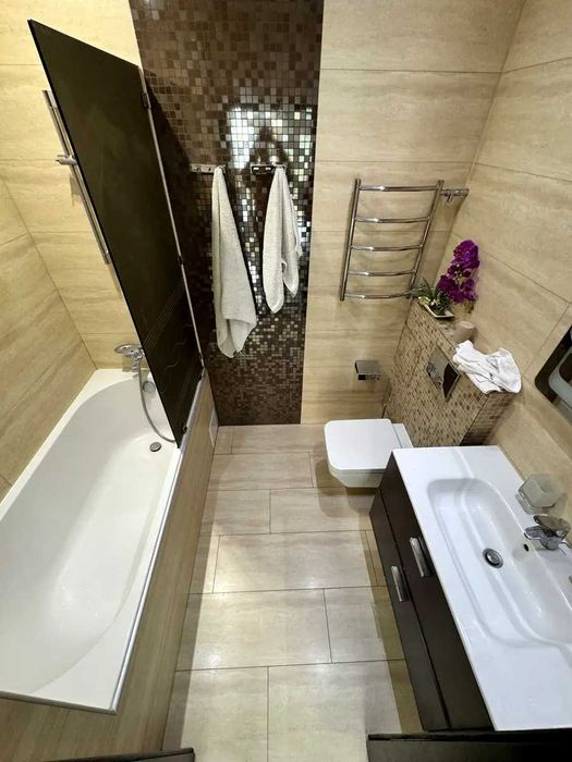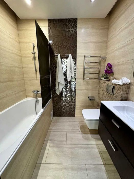 Дніпровський; Аренда большой квартиры в ЖК "Комфорт Таун"; Светлый интерьер, стильный ремонт, продуманная планировка. Две отдельные комнаты, отдельно кухня, большая гостиная, установлен теплый пол кухня ванная комната и коридор. Все сделано с заботой о комфорте. Квартира полностью укомплектована.