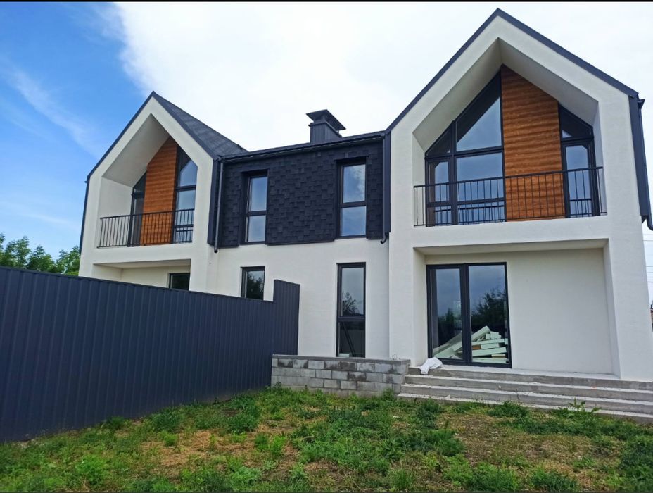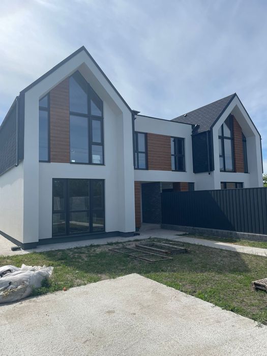 Площа 126м2, два повноцінних поверхи, висота стелі 2,8-4м, 2 санвузли, 4 кімнати та кухня студія. Фундамент збірно-монолітний з гідроізоляцією та утепленням + утеплена відмостка.