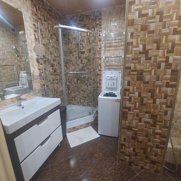 Дві великих шафи-купе, двоспальне ліжко з ортопедичним матрацом та розкладний диван. Душова кабіна, лічильники, кондиціонер в кожній кімнаті,панорамні вікна,пральна машина, вбудований холодильник, варочна поверхня , духова шафа,телевізор,бойлер.