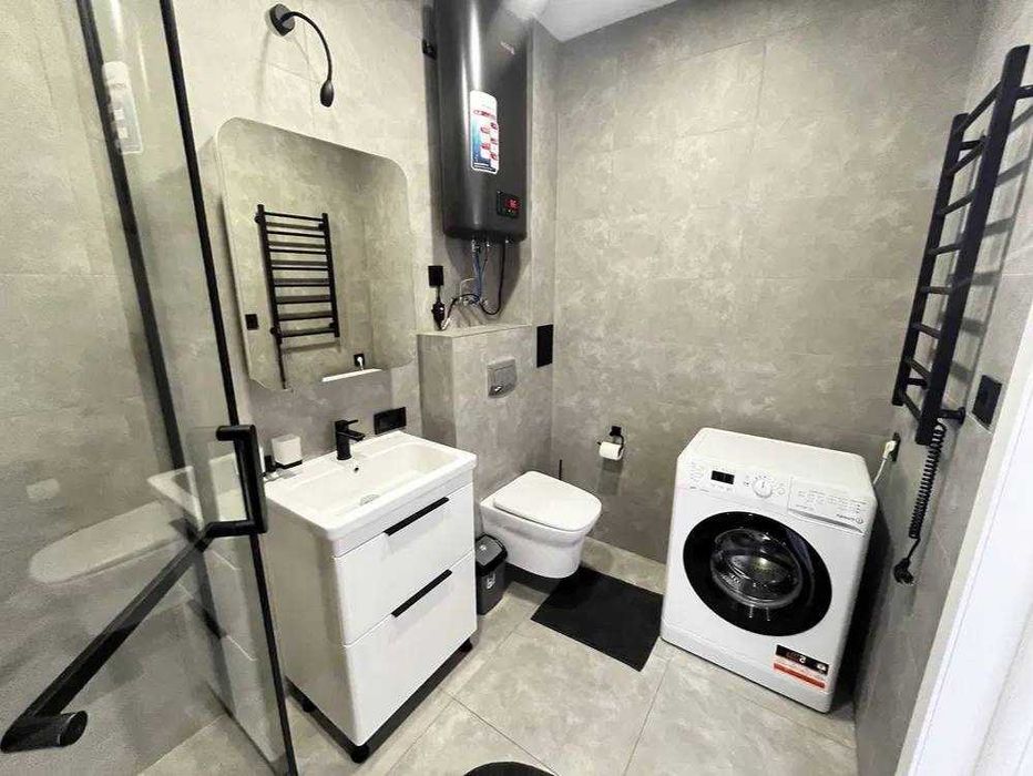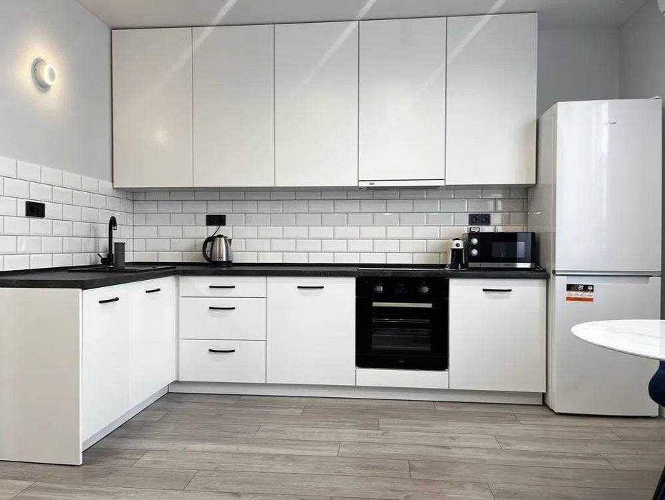 В квартире есть всё необходимое для комфортной жизни: полностью укомплектованная кухонной посудой, постельным бельём, стиральной и посудомоечной машинами, диваном на кухне и двуспальной кроватью в спальне. Также установлена четырёхконфорочная варочная панель и душевая кабина.