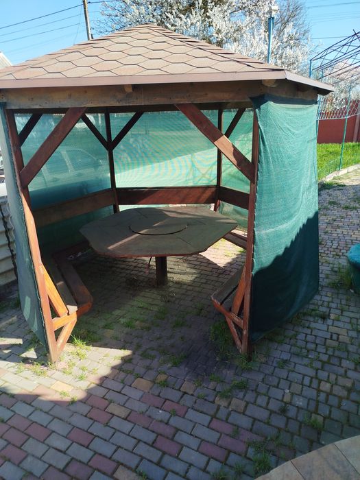Фонтан та альтанка для відпочинку на свіжому повітрі.