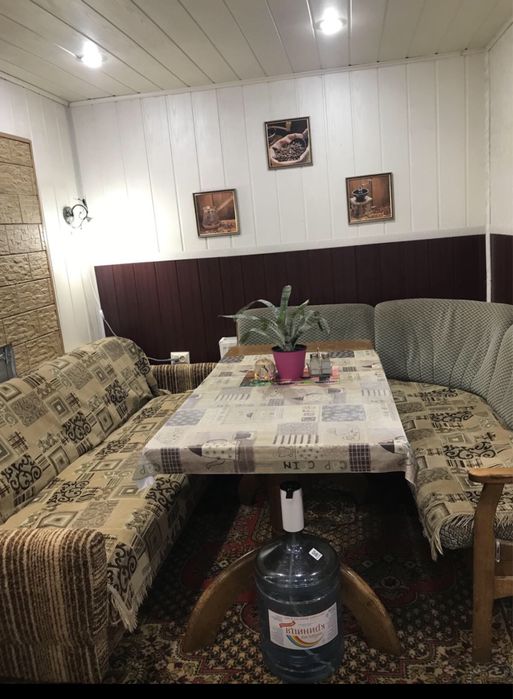 1 -господаря з усіма зручностями :загальна площа 80 м2 з двома спальнями ,ванною кімнатою,передпокій,комора,котельна , водопостачання і відведення /септик з насосом для відкачки/,бойлер на 50 літрів ,опалення котел на твердому паливі і груба ,окреме приміщення для газових балонів і генератора 4 кВт ,на випадок відключення світла,на вводі автомат 40 кВт, будинок стоїть на сваях з швелерів,зкручених між собою шпильками по усьому периметру;
