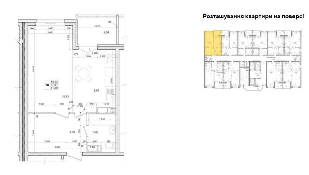 ЖК Вудлайн / 41.6 / Новосілки / Теремки; Продаж Квартира 41,6м2 в ЖК «Вудлайн»