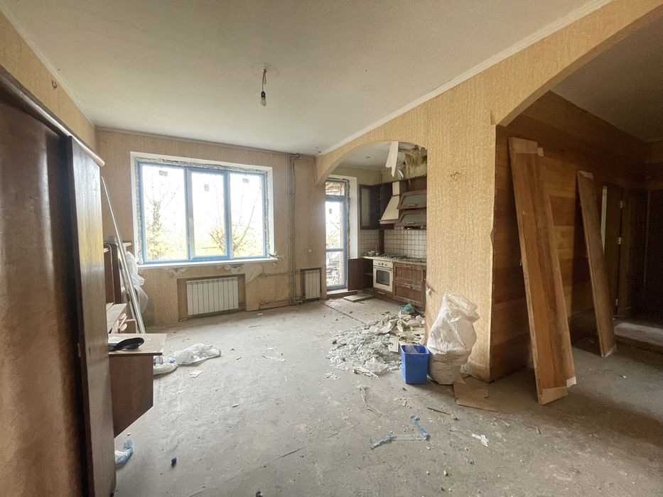 Кімната перероблена з трьохкімнатної на двохкімнатну з великою кухнею-студією.