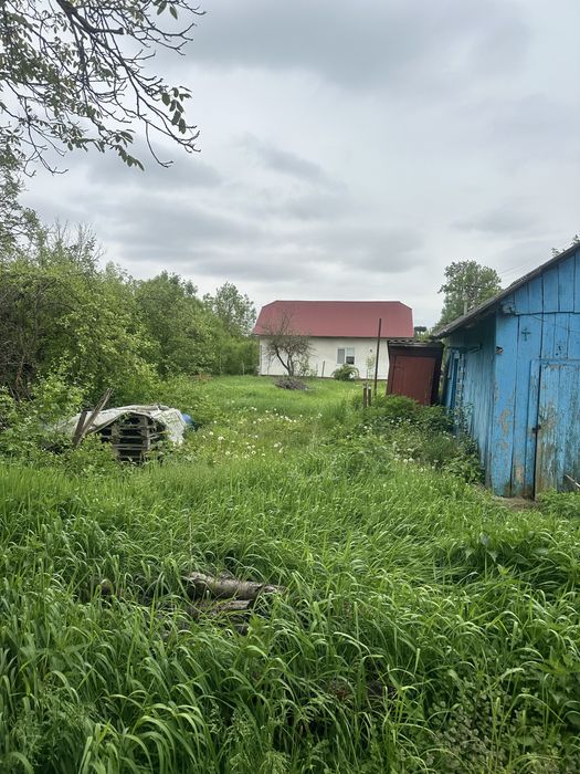 З двох сторін висока бетонна огорожа, інші сітка . На ділянці є деревʼяні господарські будівлі, великий плодовий сад коло будинку.