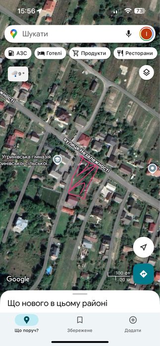 Продаю земельну ділянку в Угринові попри центральну дорогу, вул. Незалежності . 5хв від Радіозаводу, 7км від Ратуші