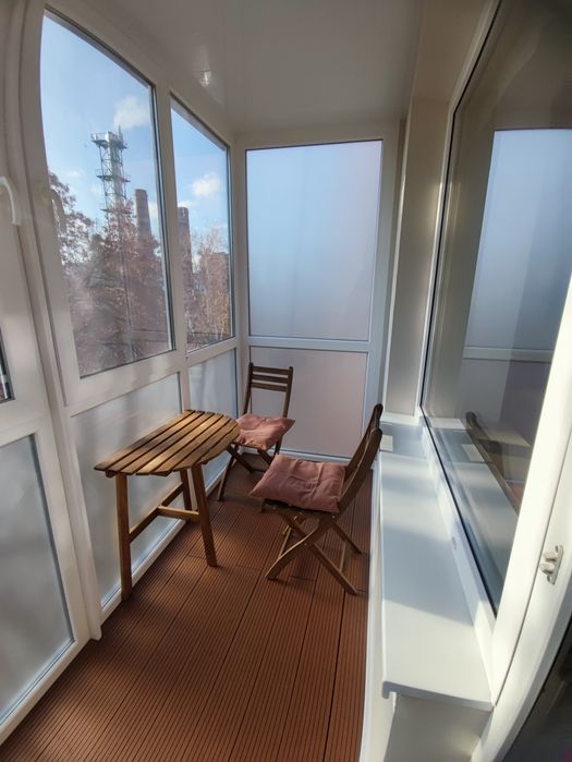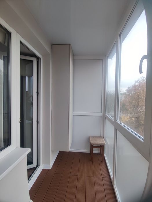 На балконі організований куточок відпочинку та пенал для зберігання інвентарю для прибирання. На вікнах москітні сітки. Вікна на обидві сторони будинку.