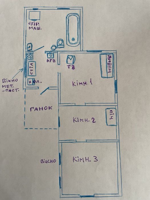 3 кімнати 20/10/25 кв.м