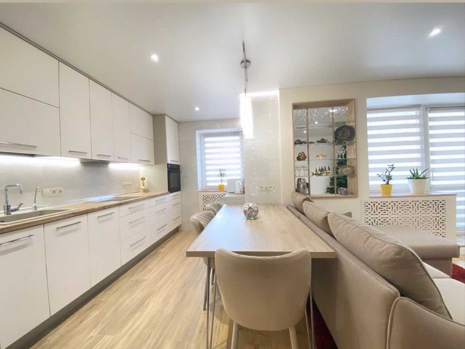 Вбудована кухня з побутовою технікою. Нові меблі під замовлення. Сантехніка від кращих виробників. В квартирі виконана тепло та шумоізоляція. Ремонт зроблений для власного проживання. Все в ідеальному стані.