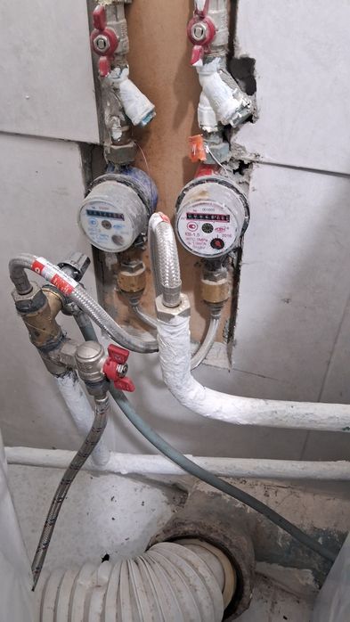 Счётчики горячей и холодной воды.