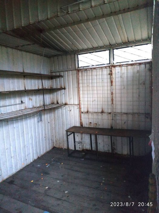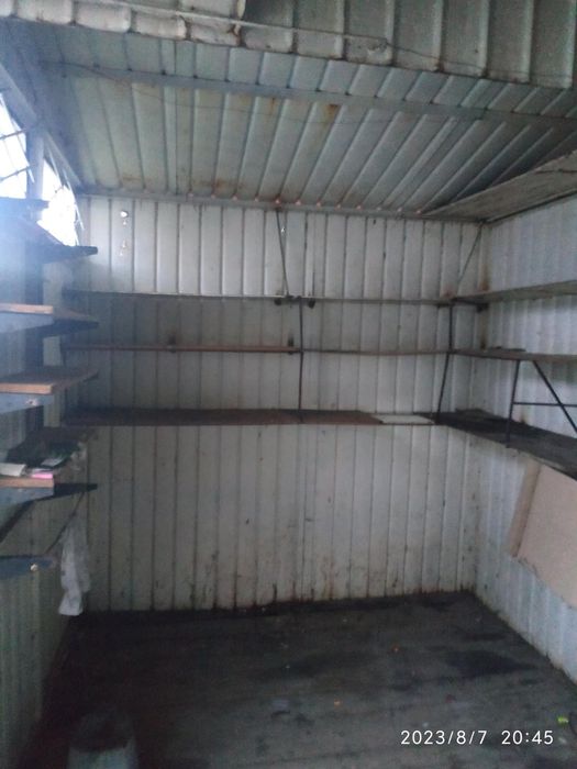 На территории имеется железное складское помещение (типа МАФ/повельен ) и железный гараж — идеальное решение для моментального хранения инструментов или открытия временного офиса.