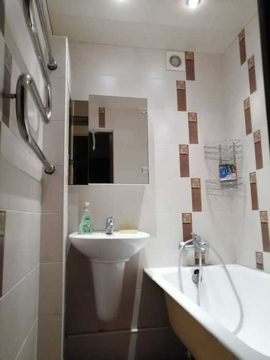 чистий санвузол із ванною та новою сантехнікою;