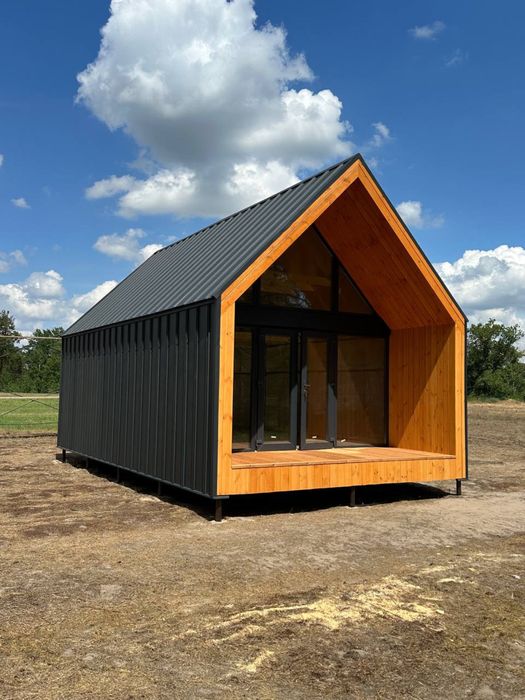 Домокомплект Барн з територією; Продаж домокомплекту Барн 42 кв.м біля Луцька. Ціна встановленого будинку зі своєю територією з зовнішнім оздобленням і внутрішнім утопленням без ремонту та комунікацій