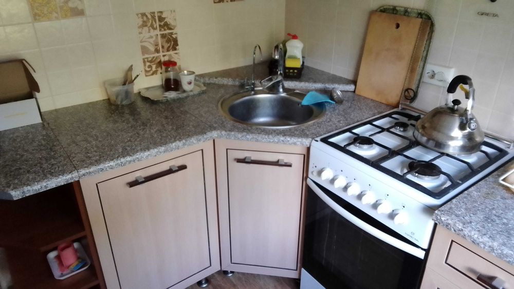 Стан квартири на фото, килимки наразі відсутні. Сусіди спокійні, тихі. Газова колонка працює без електрики.
