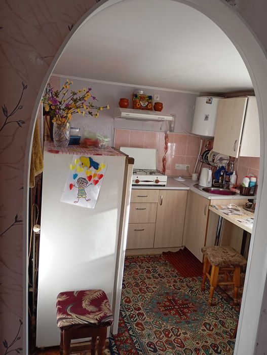 Будинок біля автовокзалу; Продам будинок 8х10 зі всіма зручностями вул. Київська район автовокзалу. Три ізольовані кімнати. Стелі і стіни утеплені, стіни і підлога рівні. Нова кабельна проводка. Опалення газовою грубою, дуже теплий дім. Кондиціонер. Можливість проживання двома родинами або з батьками два окремих дома 6х6 + літня кухня 4х6 (потребує ремонту). Є погріб під Ж/Б плитами. Є дозвіл на придобу і гараж. Город 3сот засаджений малиною і ожиною. Деталі по телефону або при огляді. Торг Є.